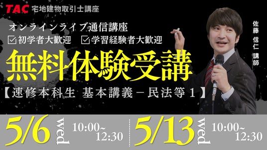 宅建試験対策講座を展開しているTAC株式会社(東京都千代田区)は、2026年(令和8年)の合格を目指す方に向けて、実際の講義をライブ配信で体験できるオンライン体験入学を開催します。