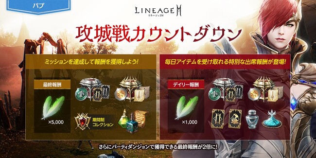 さらに、期間中、712アデナを使用することで、出席報酬「攻城戦カウントダウン」をオープンすることができます。