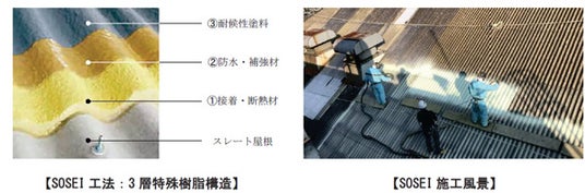 (2)3層の特殊な樹脂をスプレーコーティングして強靭な屋根を蘇らせる「SOSEI」の施工