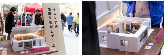 当日は、世代や性別を問わず住宅を身近に感じていただけるようにと、間取りをモチーフにした「イニシアの間取り転がしゲーム」を実施し、イベントに来場された方々のうち、約350組の方にご体験いただきました。また、ゲームをクリアした方には、実際に当社のリノベーションマンションの建材で利用している、環境に配慮した間伐材からできたおもちゃや、マイクロプラスチックをアップサイクルしたカラビナキーホルダーなどをプレゼントいたしました。