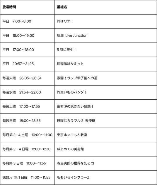 (注5)一部リピート配信となる番組もあります