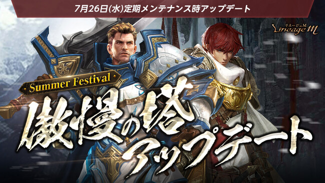 PCオンラインRPG「リネージュ」のモバイル版タイトル『Lineage M(以下、リネージュM)』のサービス、運営をしているエヌ・シー・ジャパン株式会社(東京都港区、代表取締役:金 澤憲(キム テクホン) 以下、エヌシージャパン)は、2023年7月26日(水)に「2023 Summer Festival in ADEN」第3弾として、「傲慢の塔アップデート」、及び「アデンの納涼祭」の開催をお知らせします。
