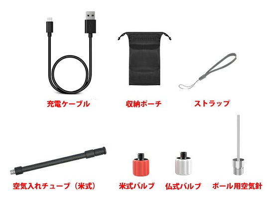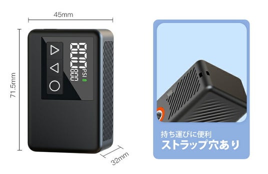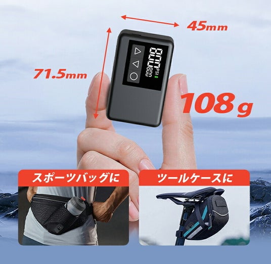 【超小型/超軽量/ディスプレイ表示/大容量バッテリー/Type-C充電/LEDライト付き/米式・仏式バルブ対応】