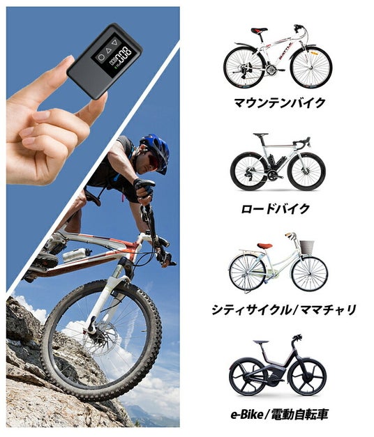 一般的な自転車や電動自転車、マウンテンバイクはもちろん、ロードバイクの高圧にも対応しています。