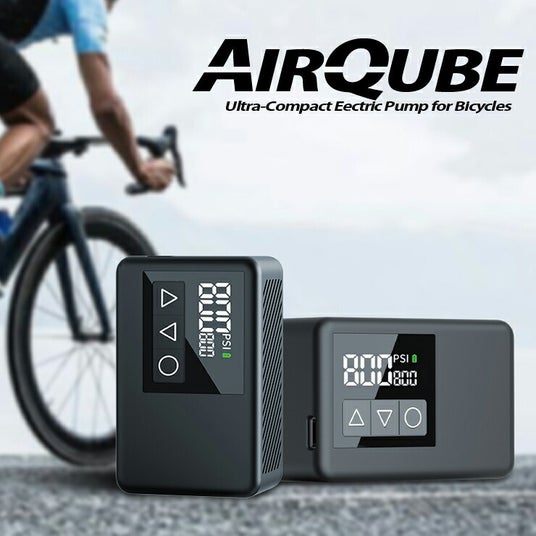 「AirQube(エアキューブ)」は超小型の自転車タイヤ用の空気入れ。