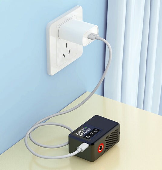 充電はUSB Type-C対応でACアダプターを使った家庭用コンセントからの充電はもちろん、モバイルバッテリーを使った充電も可能です。
