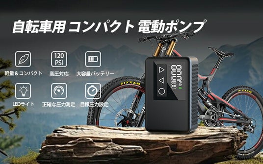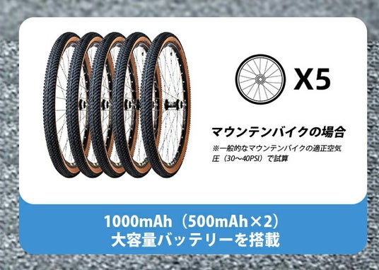 マウンテンバイクなら、フル充電では約5本のタイヤに空気を入れることが可能です。