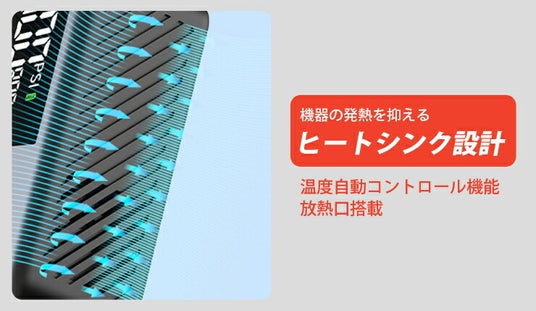 温度自動コントロール機能と放熱口を搭載したヒートシンク設計で、多くの電動ポンプの弱点となっている発熱問題やをクリア。