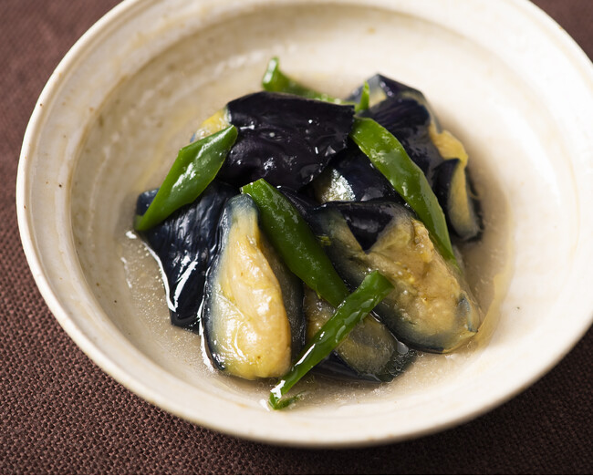 色鮮やかな深紫色の茄子にたっぷり含まれた出汁が食欲をそそります。
