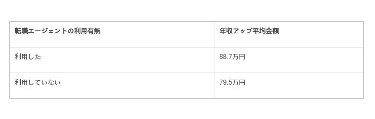 一方で、転職エージェント非利用者の回答は平均金額79.5万円にとどまり、利用者と非利用者に平均9.2万円の差があることが明らかとなりました。