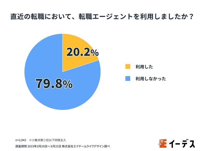 転職活動で転職エージェントを利用した人は約2割と少数派(20.2%)