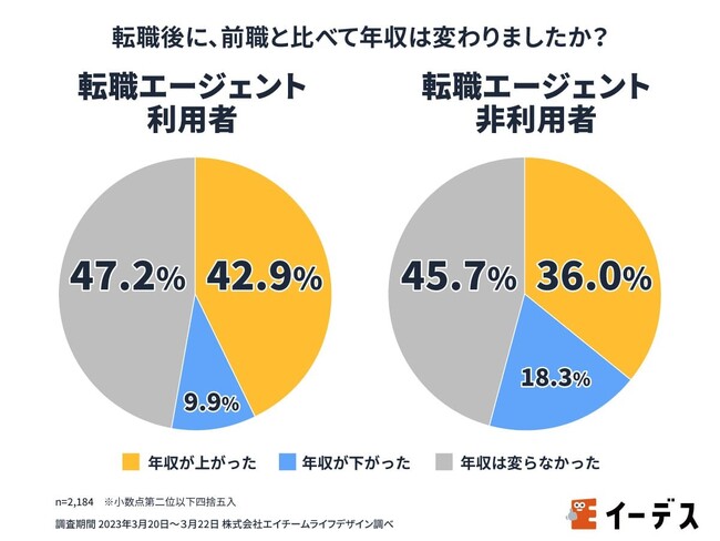転職エージェント利用者の4割以上が転職で年収アップに成功(42.9%)