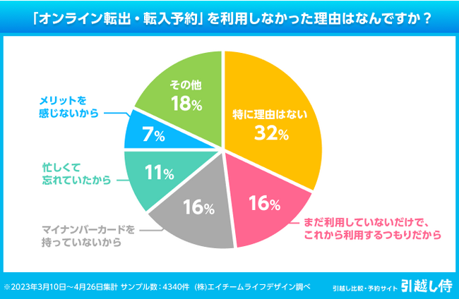 そもそも、オンライン手続きを知らなかった人が全体の6割を占めることが大きな原因と考えられます。引越し前にオンライン手続きを知ってもらうために、これまで以上に周知が必要そうです。