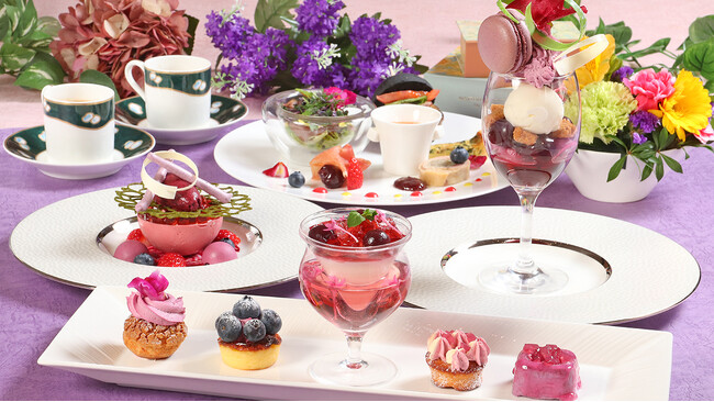テーマは「ライラック」。札幌の木にも選ばれるライラックは、初夏の訪れを告げる時期に花が咲き揃います。新しい季節の到来を感じさせる爽やかな藤紫のライラックをイメージして、札幌プリンスホテルでも初夏にぴったりのスイーツの数々をシェフパティシエが趣向を凝らしご用意いたしました。