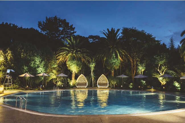 ナチュラル系とピンクのライトアップで2つの顔を見せる魅惑のナイトプールもオープン!