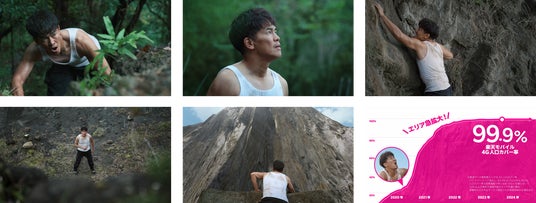 新ウェブCMでは、「自分史上最高」を目指して常に成長を続けている武井壮さんを出演者に起用しました。楽天モバイルがこれまで通信エリアを急速に拡大してきた軌跡をお伝えするために、楽天モバイルの4G人口カバー率が99.9%に達するまでの過程を急斜面の山に見立て、武井壮さんが激走しています(注1)。過酷な山道を激走する武井壮さんの姿から、楽天モバイルが通信エリア拡大に向けて奮闘した様子を連想できるようなCMになっています。