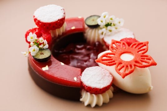 いちごとトンカ豆のクレームショコラ “ベこの乳”ヨーグルトのアイスクリームと共に杏仁のように甘く香る、トンカ豆の香りを纏わせたクレームショコラと、いちごのコンポートを重ねた2層仕立てのデザート。