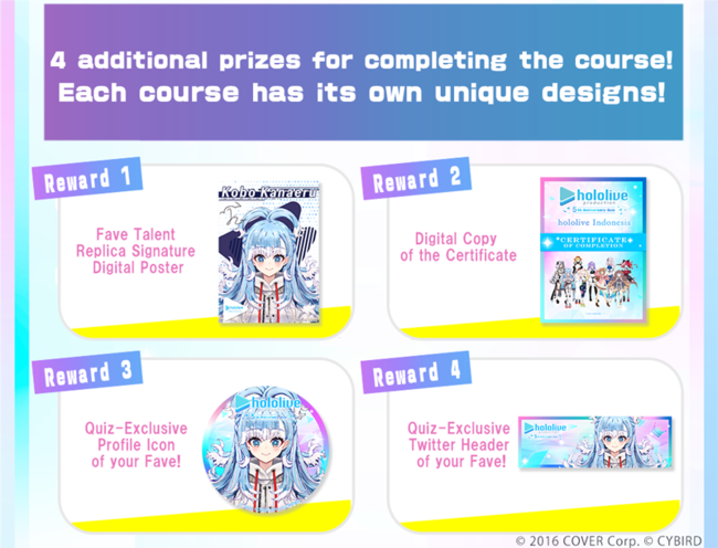 ▼受験者はもれなく「ホロライブプロダクション大学 デジタル学生証」など特典が4点もらえる!