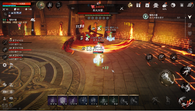 また、もう1つの注目企画である「団結!犠牲の墓を攻略せよ!」では、同じく赤チーム、青チーム、黄チーム、緑チームに分かれ、パーティーダンジョン「犠牲の墓」を同時にプレイし、最終ボスモンスター「炎火大聖」攻略を行っていただきました。