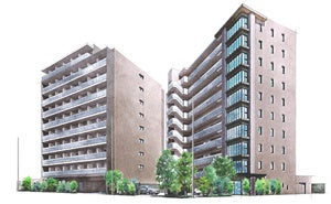 外観完成予想イラスト(左:学生マンション、右:イニシア南茨木)