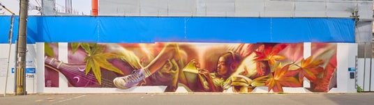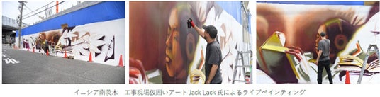 ドイツから来日したJack Lack氏によって、2025年4月17日(木)から仮囲いへのペインティングを開始し、4月25日(金)に完成・お披露目されました。