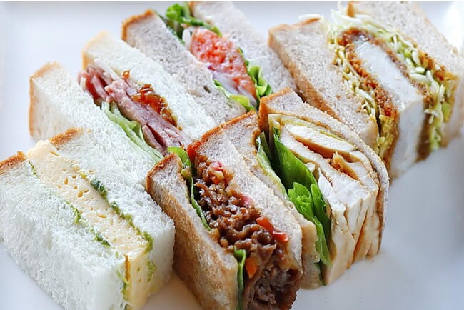 スイーツのほかにも、ポークロースにとんかつソースを絡め、千切りキャベツと一緒にサンドした定番の『ポークカツサンド』や、ニューオータニ特製の出し巻きに浜名湖産の海苔とみたらしだれを使用した『出し巻きサンド』など、こだわりが詰まった全17種ものサンドウィッチが登場。