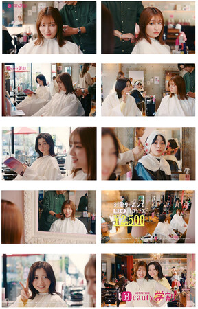 今回の内容は、吉川さんと桜田さんが並んでヘアカットしている美容室が舞台。吉川さんが隣に居合わせた客の桜田さんに、『ホットペッパービューティー』の学割クーポンのお得さを唐突に話し出そうとしますが…、そのお得さを先に桜田さんに言われてしまい思わず驚いた表情に。気を取り直して、「2,500円になりま~~~~すっ」(※)と、めげずにお得さをアピール!最後は、二人でうれしそうにうなずく様子がとてもかわいく、見ていて思わず笑みがこぼれる内容になっています。