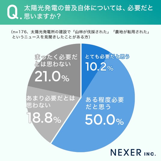 続いて、太陽光発電所の建設にともなう山林伐採や農地転用のニュースを見聞きしたことがある方に、太陽光発電の普及そのものの必要性について聞いてみました。