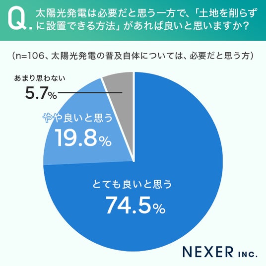 続いて、太陽光発電の普及は必要だと回答した方に、「土地を削らずに設置できる方法」があればよいと思うかを聞いてみました。