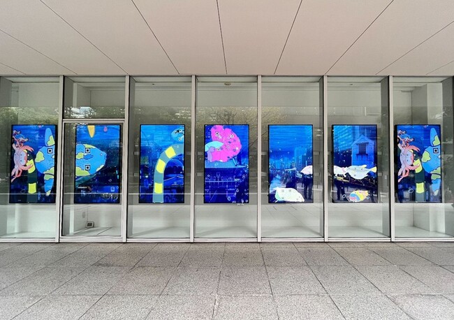 遊歩道に沿って30メートル続くデジタルアートギャラリーKS46Wallにある27枚のサイネージに高野 良和 准教授指導の下、学生が作品制作をおこないました。