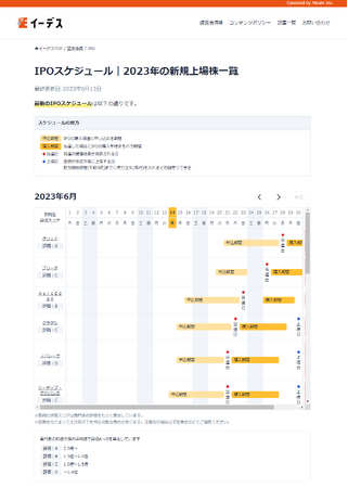管理の難しいIPOの上場スケジュールをカレンダーで視覚的に確認することができるページです。