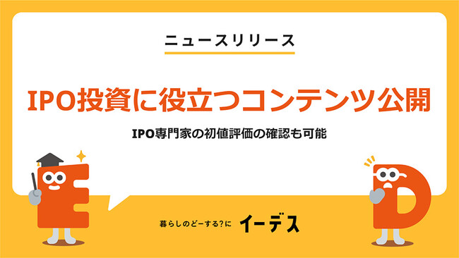 株式会社エイチームのグループ会社である株式会社エイチームライフデザイン(本社:愛知県名古屋市、代表取締役:間瀬文雄)は、暮らしの「まよい」を解決する情報メディア「イーデス」の「証券投資カテゴリ」内に、2023年6月15日からIPO(新規公開株)投資に役立つ情報コンテンツを公開しました。