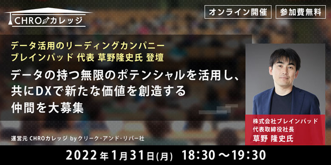 データ活用のリーディングカンパニー ブレインパッド 代表 草野隆史氏 登壇「データの持つ無限のポテンシャルを活用し、共にDXで新たな価値を創造する仲間を大募集」