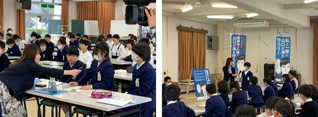 ・開催概要:JR新山口駅近くにある山口市立小郡南小学校の4年生を対象に、海のごみを減らしていくには何が必要でどうしていけばよいのかを学ぶ特別授業を実施しました。講師は、「拾い箱」を考案した鹿児島・与論島在住の池田龍介さんで、授業はリモートで行われました。3限目と4限目を使った授業では、池田さんが、与論島に漂着するごみはどの国からきたものが多いのかなど、クイズを交えて海のごみの問題について説明しました。また、海のごみをキーホルダーや植木鉢などにして再利用するアップサイクルについて話し、活発な質疑応答も行われました。