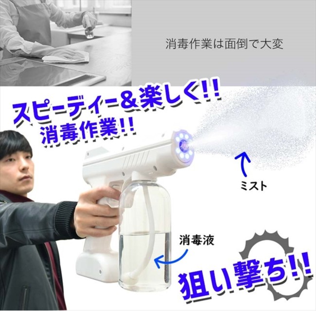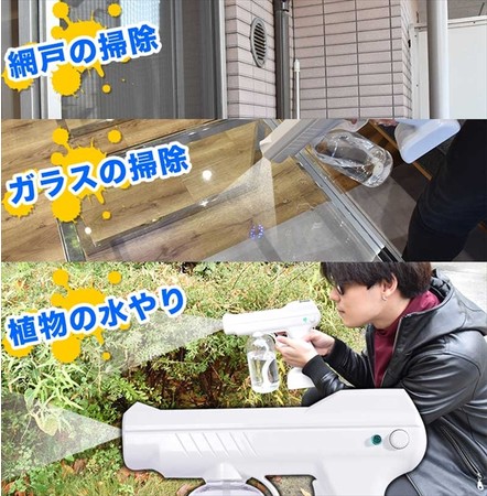 消毒液や水を広く素早く撒けるボトル付きミストスプレーガン!