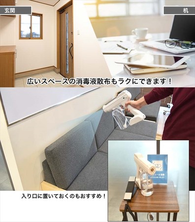 イスや机などの広い範囲を一気に消毒!面倒な消毒作業もはかどります。