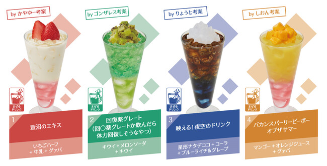 「ヤングスキニー」の各メンバーが考案したコラボドリンク4種[各750円(税込)ノンアルコール]をご用意しました。