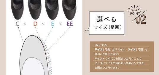 ワイズ(足囲)を知ることが大事。EIZOのブラックパンプス・カラーオーダーは、4ワイズ展開でアナタに合う靴をご提案いたします。