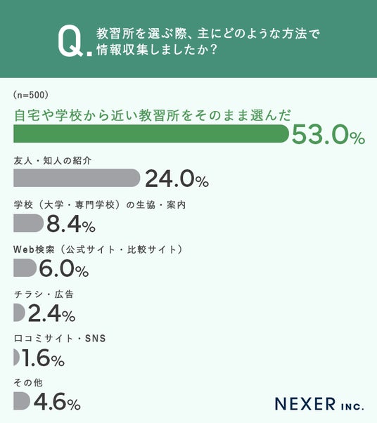 株式会社NEXER・自動車教習所の選び方に関する調査