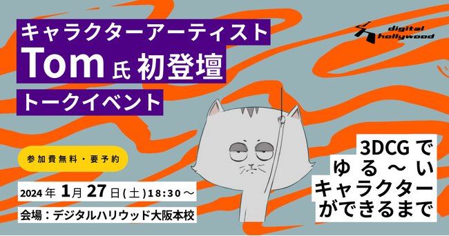 IT関連及びデジタルコンテンツの人材育成スクール[デジタルハリウッド] (運営会社:デジタルハリウッド株式会社、本社/本校:東京都千代田区、代表取締役社長兼CEO:吉村毅、学長:杉山知之)の大阪本校では、本スクールの卒業生でもあり、3DCG制作ツールBlender(ブレンダー)初心者のためのチュートリアル動画を数多くSNSで配信するTom氏にご登壇いただきトークイベントを1月27日に開催します。