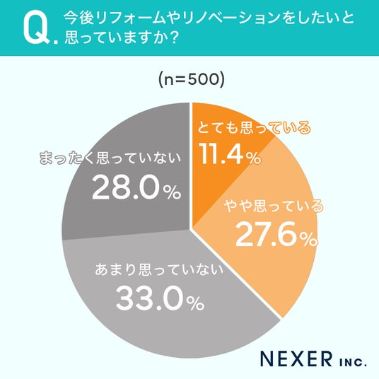 ■39.0%が「リフォームやリノベーションをしたいと思っている」と回答