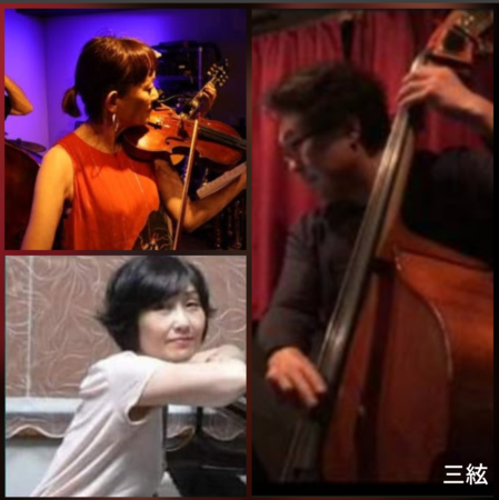 三色の弦から紡ぎ出される音が心地よいトリオ「三絃」。ゆったりとした落ち着いた演奏は、ジャズライブ初心者の方にも親しみやすい雰囲気です。