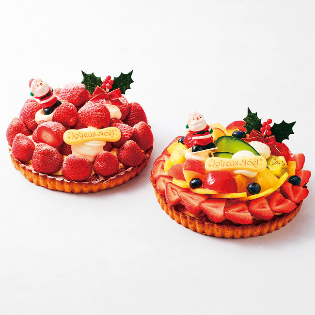 しっかりと焼き込んだタルト生地に苺、パイン、オレンジ、メロンなどの いろどり豊かなフルーツをトッピングしたクリスマスケーキです。