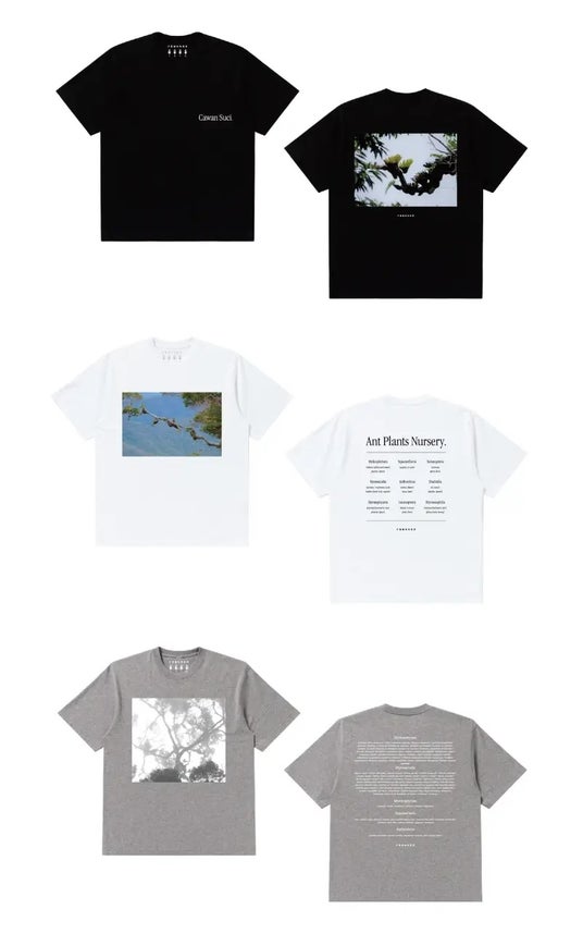 園主が自生地へ赴き撮影した写真を使った初のオリジナルフォトTシャツ。近年希少なアリ植物の乱獲が続くインドネシア・パプア領で過去に撮影した写真がデザインされています。自然でしか見られない美しい光景から、植物の消費について考えるきっかけに。