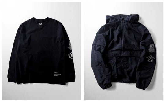 (左)houaen×comolebi ロンT ¥6,600 S-XL 身幅が広いので男女問わず着用することができます。 (右)houkaen×comolebi アノラックパーカー ¥11,000 S-XL(※展開予定)軽量のアノラックパーカー。オールシーズン使えるよう薄手の仕様になっています。