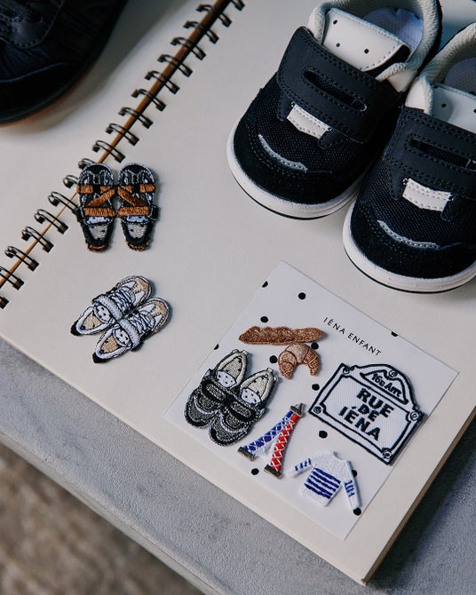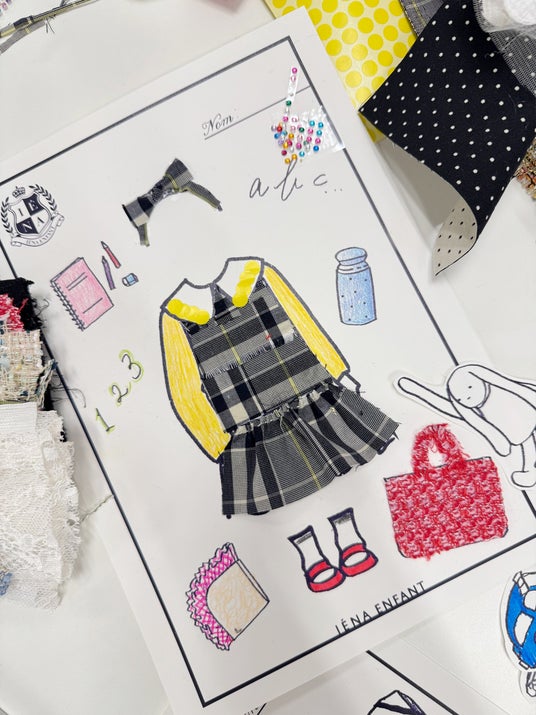 IENA ENFANTデザイナーが描くオリジナルデザイン画6枚をはじめ、実際のお洋服作りから生まれた残布、遊び心あふれるシールをセットにしたオリジナルキッド。
