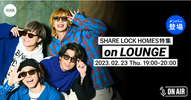 AWA株式会社(本社:東京都港区、代表取締役CEO:冨樫晃己)が運営する、サブスクリプション型(定額制)音楽ストリーミングサービス「AWA(アワ)」は、2023年2月23日(木) 19:00~20:00の1時間に渡り、オンライン空間「ラウンジ」で、SHARE LOCK HOMESのメンバーが音声とチャットで登場するイベントを開催いたします。