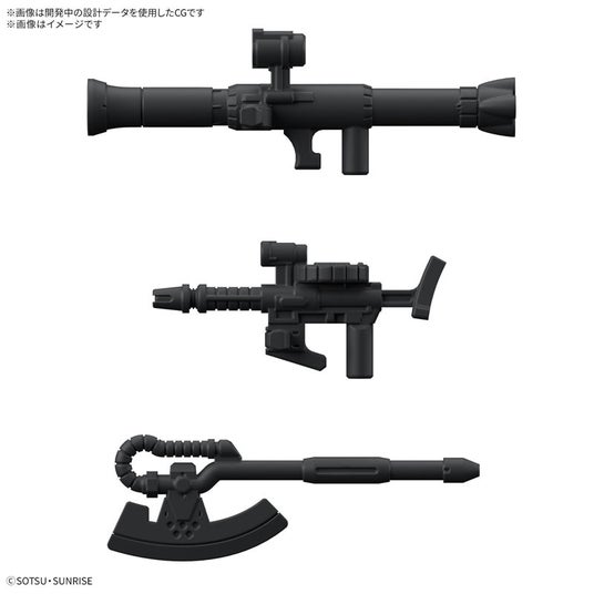 ■お馴染みの装備「ヒート・ホーク」「ザク・マシンガン」「ザク・バズーカ」も付属。