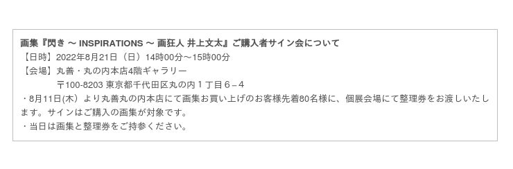 2022年8月26日(金)に、画狂人・井上文太の初となる画集『閃き ~ INSPIRATIONS ~ 画狂人 井上文太』の発売が決定いたしました。