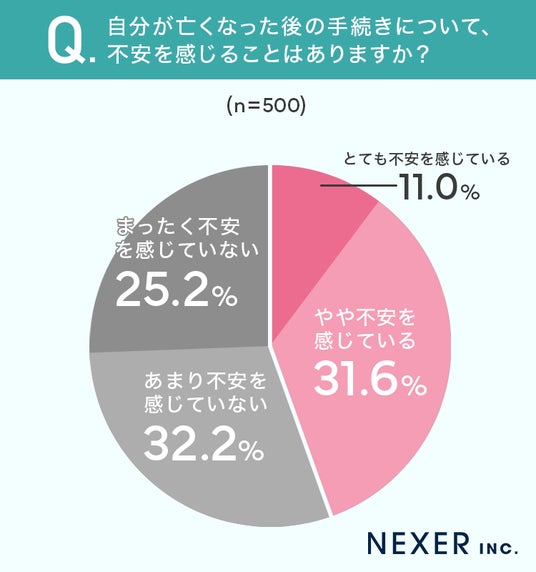 続いて、自分が亡くなった後の手続きについて、不安を感じるかどうかを聞いてみました。